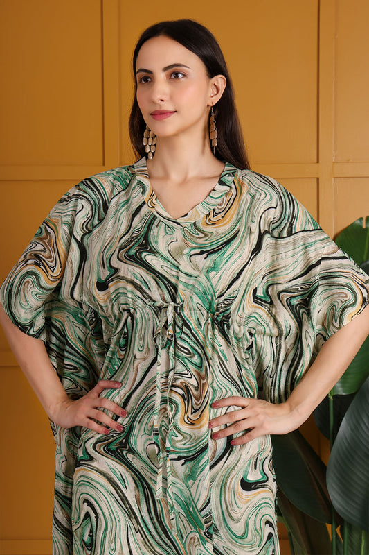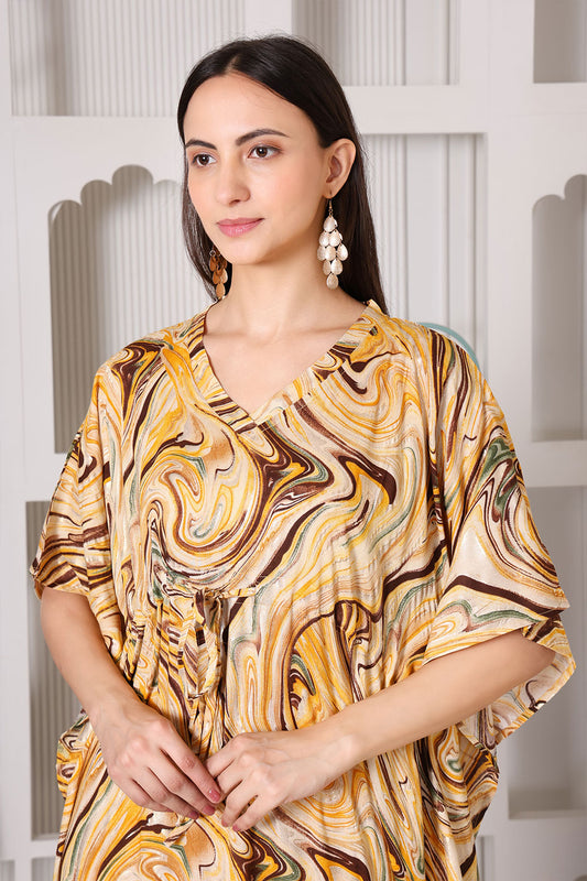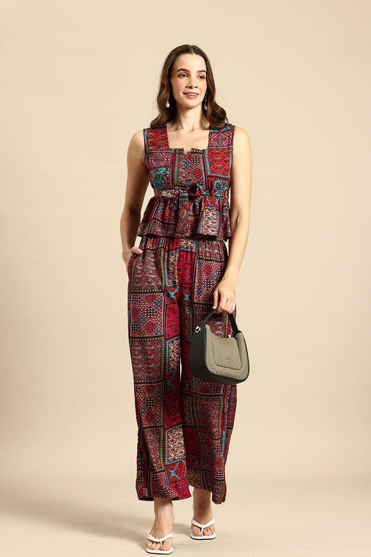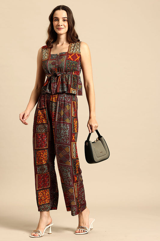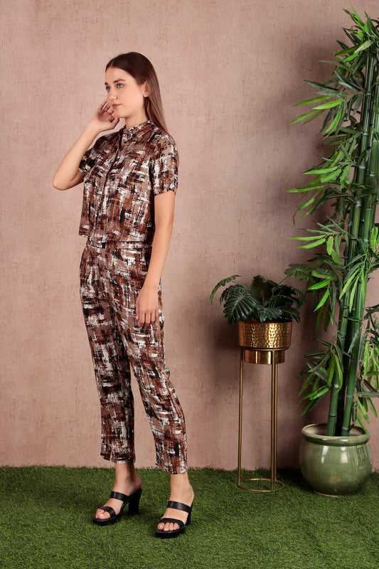 Brown Abstract Printed Premium Rayon Ethinic Co-Ord Set