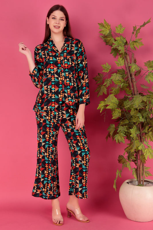 Multi color Abstract Printed Viscose Rayon Co-ord Set