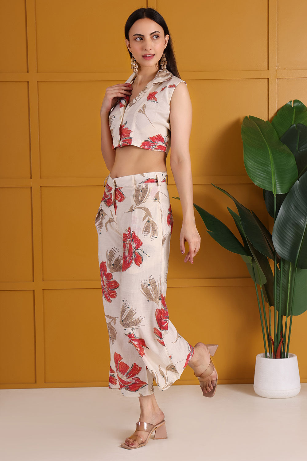 This co-ord set consist of short top trouser. A white and red co-ord set with floral flair works across a variety of occasions. You can wear it casually for a chic day look or dress it up for an evening event.The bold colors combined with floral accents make it suitable for everything from a date night, a night out with friends, or a stylish day at work. The co-ord set allows you to look still feeling comfortable and stylish.