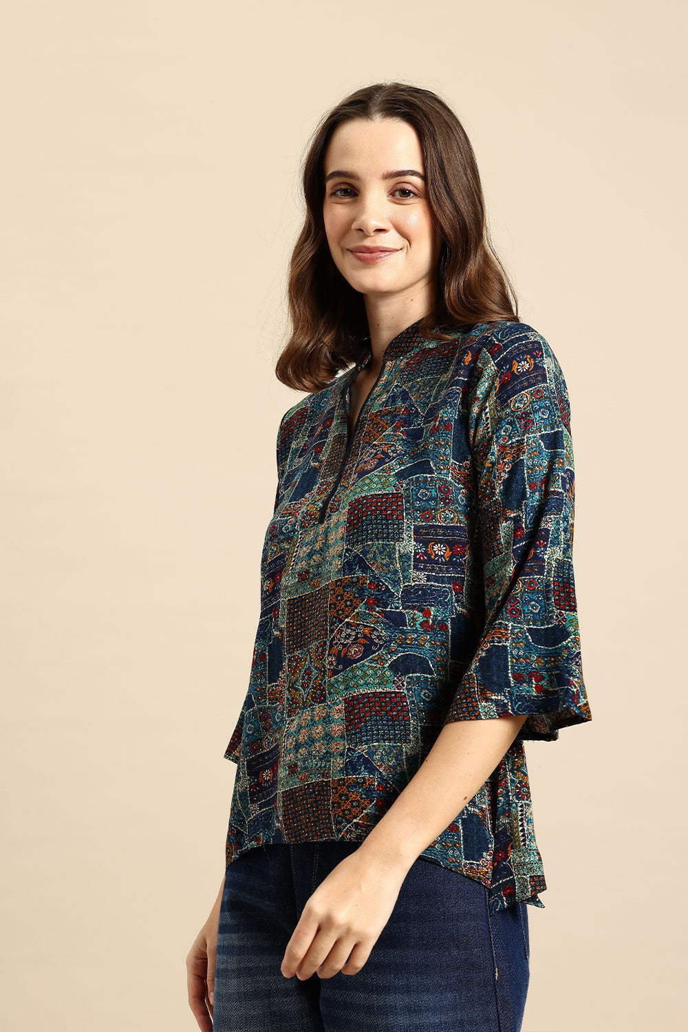 - Mandarin collar, three-quarter, regular sleeves sleeves